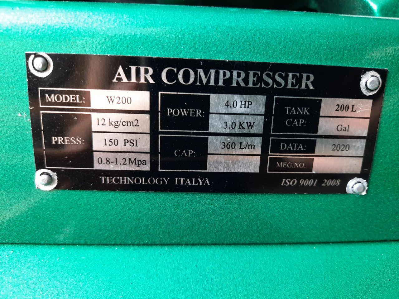 MÁY NÉN KHÍ 4HP, BÌNH 200 LÍT , ĐIỆN 220V/380V W200 (12KG) CAO ÁP